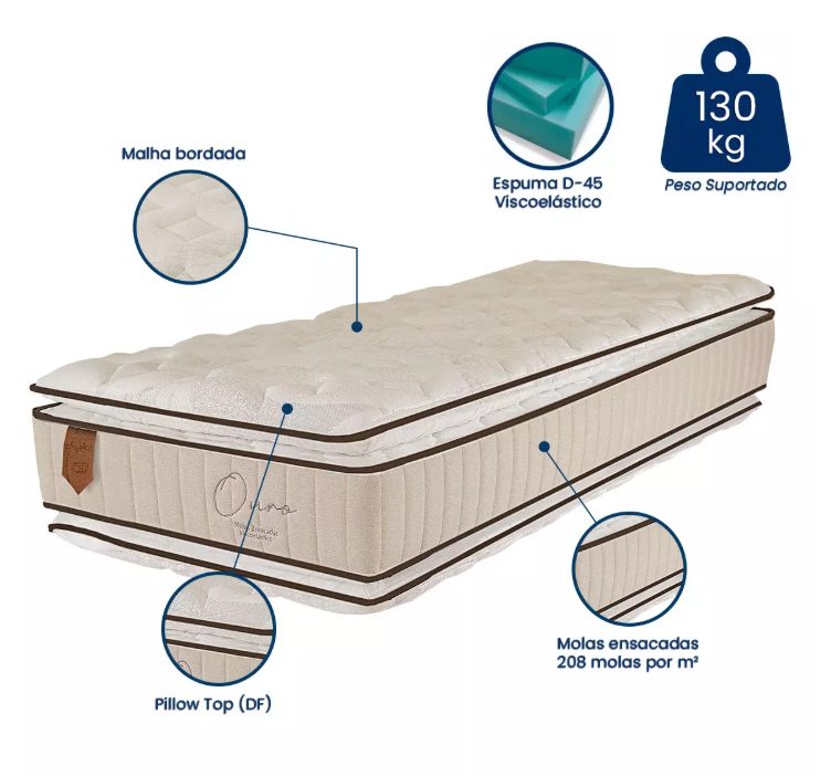 Suporte Imbatível: Projetado especificamente para biotipos de até 130kg, garantindo o alinhamento correto da coluna e evitando dores ao acordar.